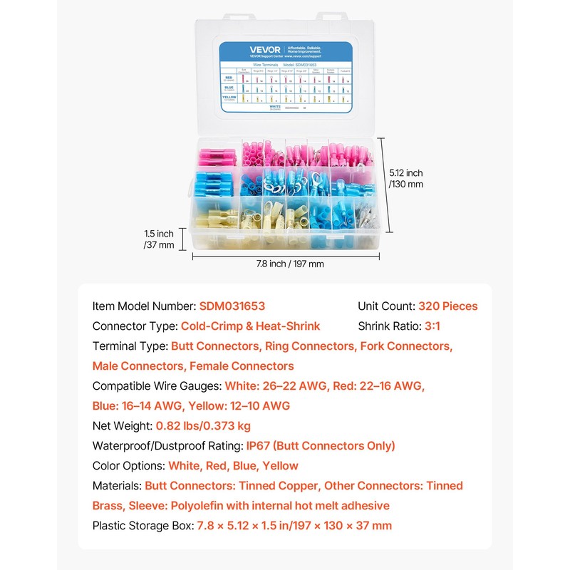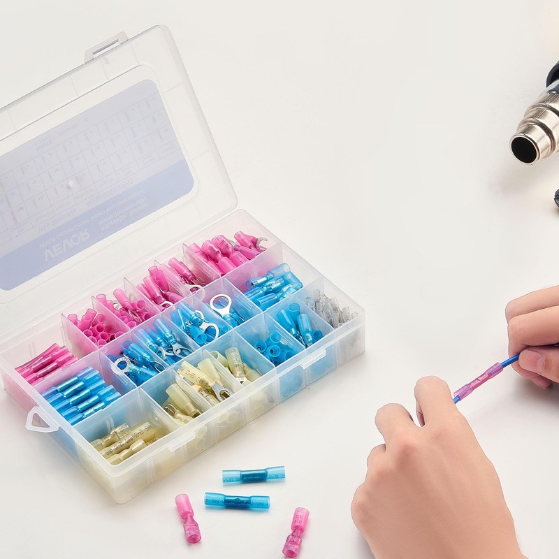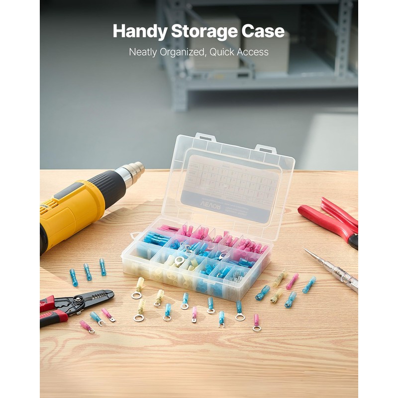 - Organized for Easy Access: The heat shrink wire connectors kit comes with a durable plastic storage box, keeping each connector neatly sorted by size and type. No more digging around for the right connector – everything is well-organized
