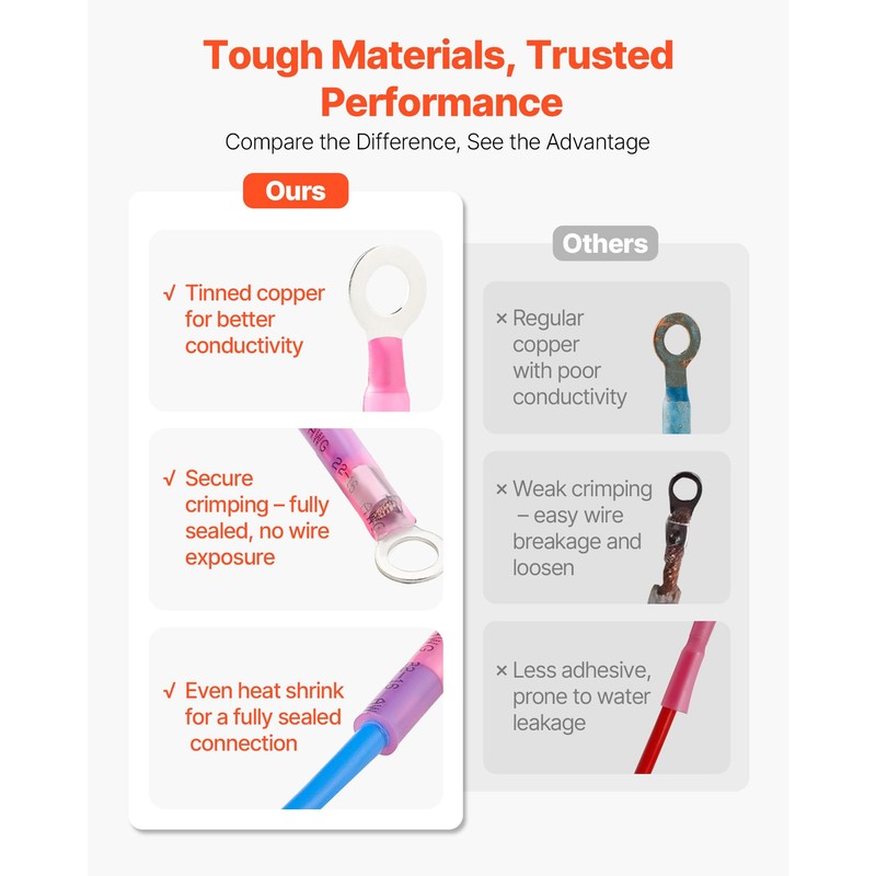 - Save Your Setup Time: No need for complicated soldering. Just strip the wire insulation, crimp for initial hold, then heat with a heat gun to shrink the sleeve for a secure, reinforced seal, and let the heat shrink crimp connectors cool down