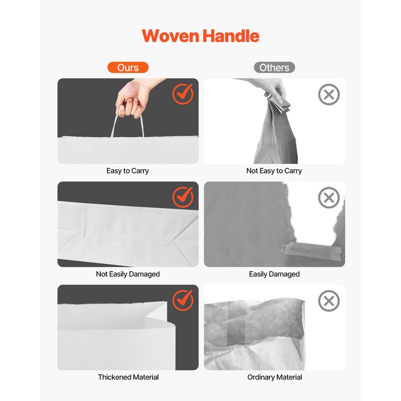 VEVOR Kraft Paper Bags with Handles, 50Pcs 16 x 6 x 12 in, Large Paper Grocery Bags, Reusable & Recycled Take-Out Sacks, Plain Party Bag Bulk for Birthday, Wedding, Business, Goody, White
