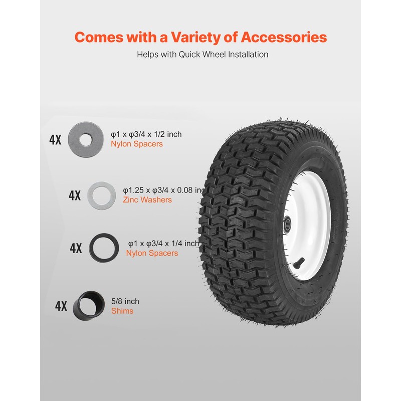 VEVOR Lawn Mower Tires, 16x6.5-8 in Tubeless Tractor Tires with Rim, 2 Pack Tire & Wheel, 3 in Offset Hub, Turf Pneumatic Tires, 3/4 in Bushing Size, 16 PCS Adapters for Riding Mower, Lawn Tractor