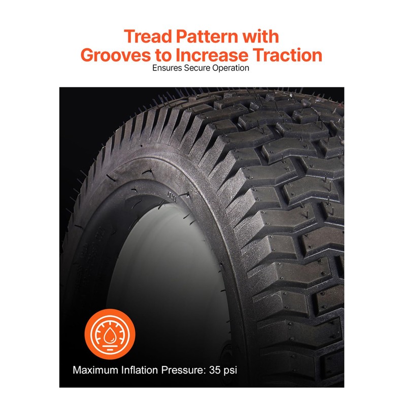 - Durable & Long-Lasting: Inflatable Tire with 35 psi Max Pressure: This tire maintains the right balance of rigidity and support, even on challenging grass. It resists wear and tear, keeping your mower running smoothly for longer.
