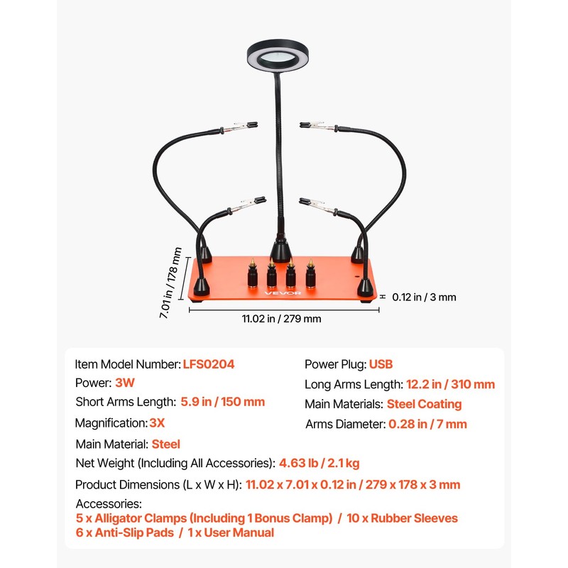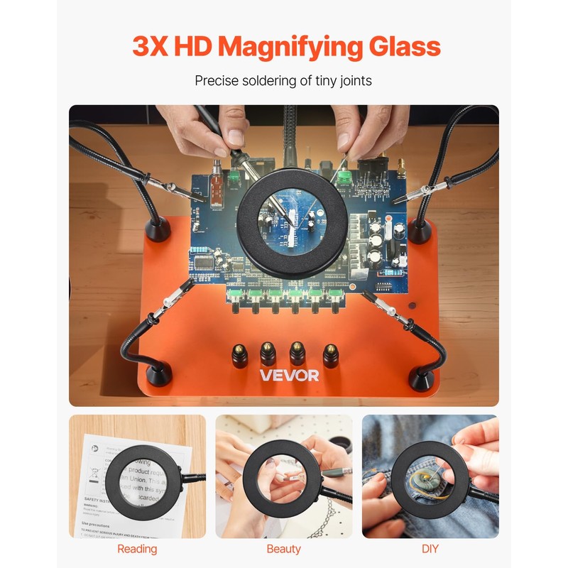 - 2-in-1 Upgraded Helping Hands Soldering Station: It includes a 3X magnifying lamp for clear, accurate detail work, making it suitable for close-up tasks.