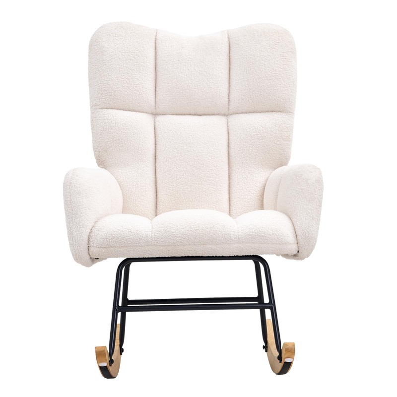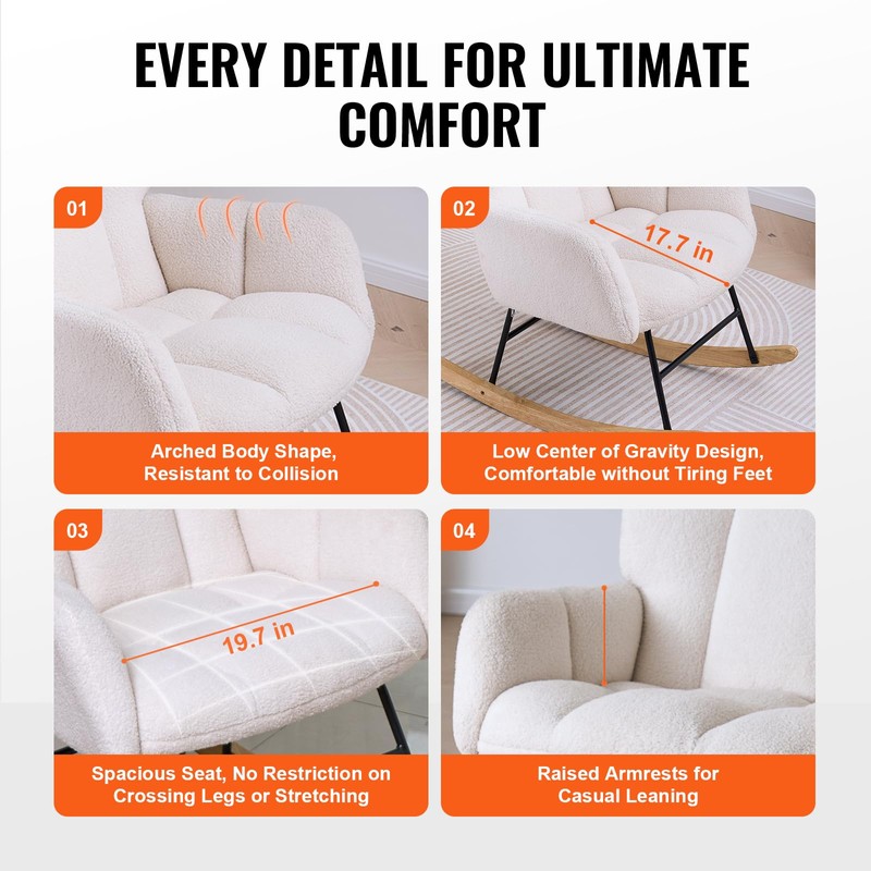 VEVOR Nursery Rocking Chair, Features a Comfortable Soft Seat and Supportive High Backrest, Teddy Fabric, Upholstered Glider for Bedroom, Living Room, Holds up to 250 lbs, in Ivory White