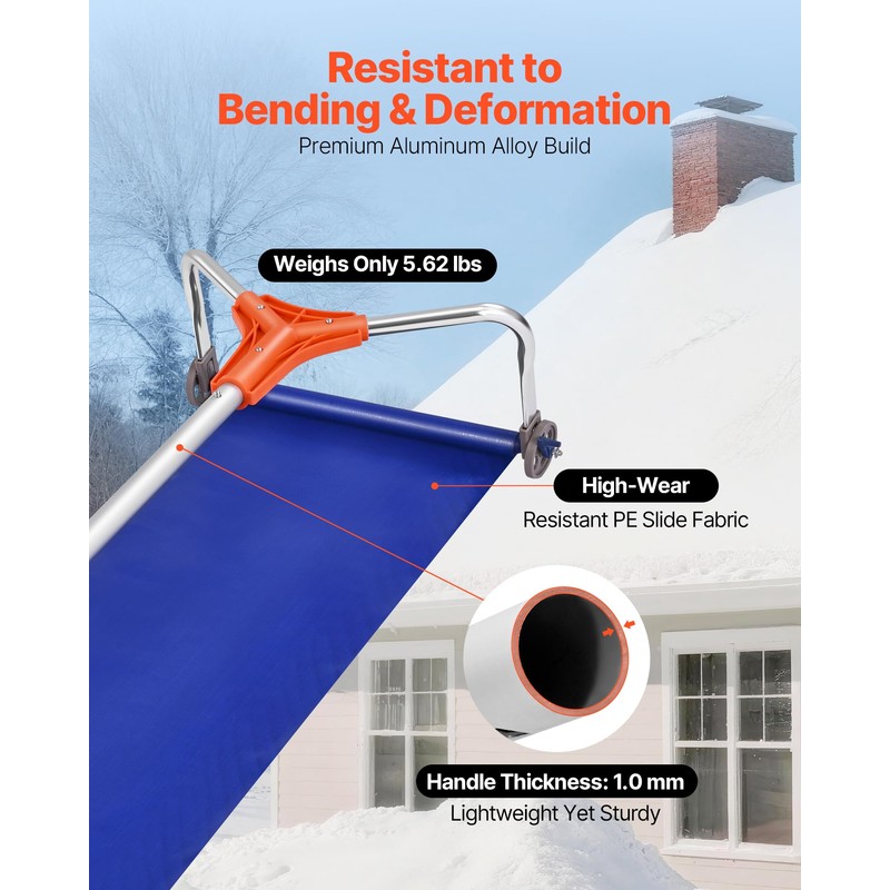 - Aluminum Alloy Material: Crafted from aluminum alloy, this snow roof rake is sturdy and durable. With corrosion & pressure resistance, it is not easily deformed or damaged after long-term use. The thickened design enhances overall strength and stability