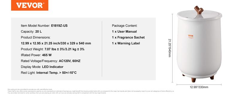 • Spacious Capacity: With a generous 20L capacity, VEVOR towel warmer for bathroom accommodates two oversized towels measuring 70 x 40 inches (approximately 177.8 x 101.6 cm). It's a must-have for larger households, ensuring everyone enjoys warm, cozy towels, robes, blankets, and more.