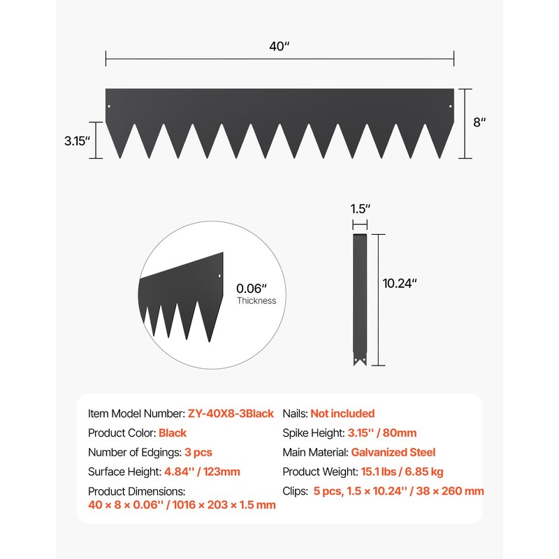 - What You'll Receive: Each set includes 3 metal flowerbed edging borders, 1 pair of installation glove, 5 clips and 1 instruction manual. The extended spiked design ensures easy installation by helping the barrier penetrate the ground with less effort. Spend more time enjoying your garden and less time maintaining it!