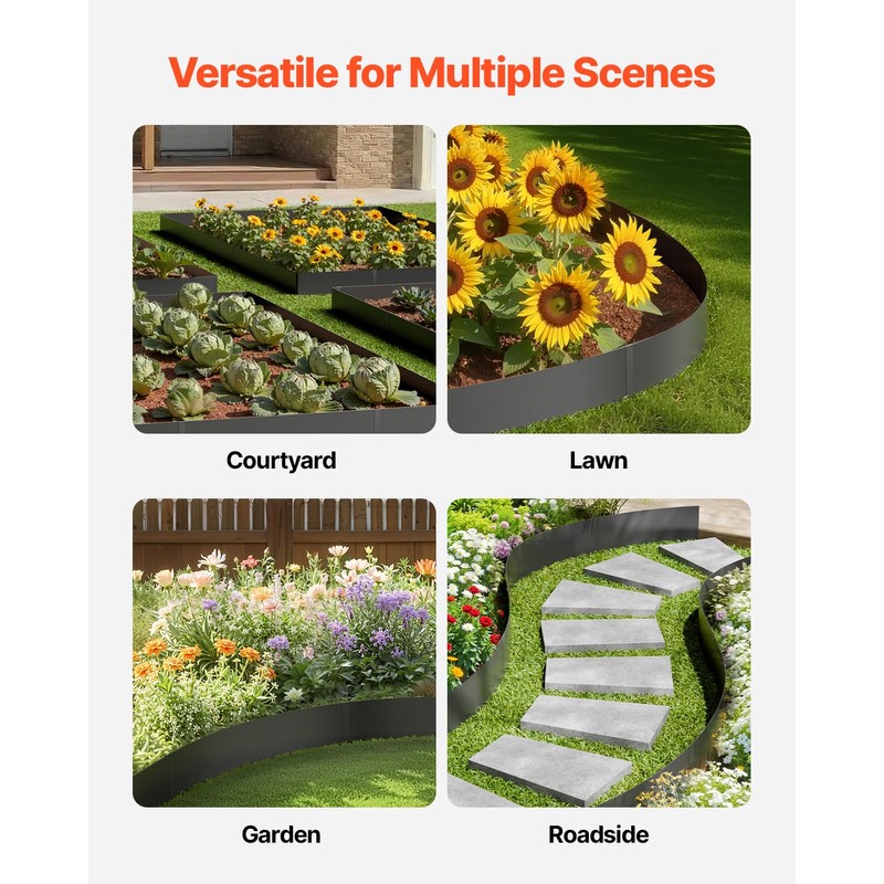 - Flexible & Bendable: This yard edging is both flexible and durable. It can be easily bent to suit any shapewhether your garden is square, round, or irregularwithout causing any damage, offering a tailored fit for your landscape design.