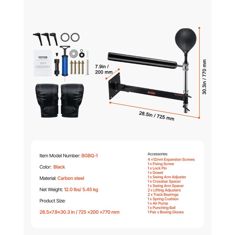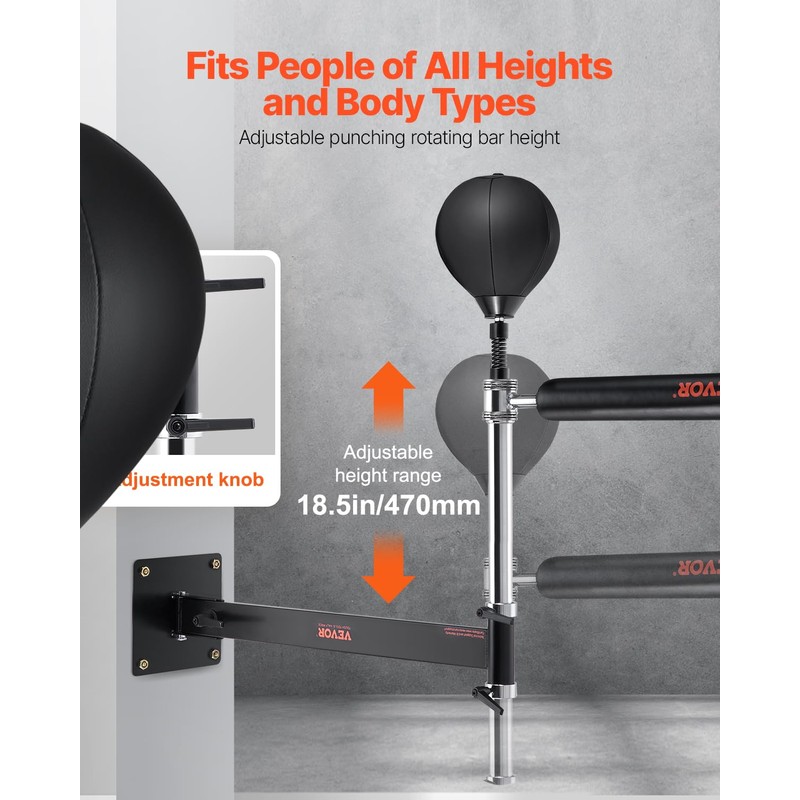 VEVOR Wall-Mounted Boxing Spinning Bar, Reflex Boxing Bar with Punching Ball, Spinning Bar with Gloves, Adjustable Reflex Speed Trainer, Boxing Training Equipment for Kickboxing, MMA, Fitness