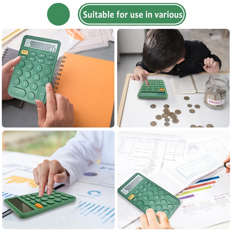 - 【APPLICATION SCENARIO】: Made of durable ABS material. Yellow-white, pink-white, orange-white, pure white, pure green, a variety of fashion styles. Small and portable general purpose desktop calculator for home, school, office or shop, can do common math like we do Has a variety of financial functions, great for adults and students