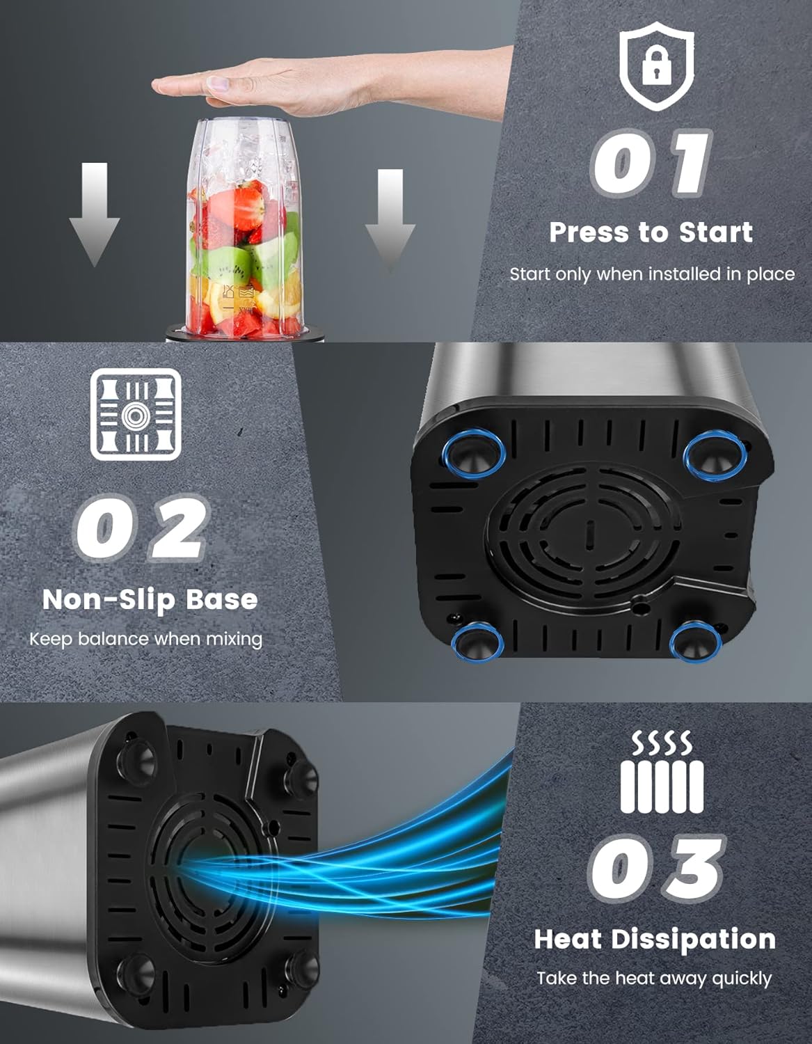 - Intermittent Press Operation: The blenders for kitchen adopts powerful pulse technology, which triggers the motor to rotate at high when pressed, with a max rotating of 25000 rpm, making the perfect drink within 10-20 seconds. Simply press and hold the smoothie blender's cup and immerse in the stirring process.