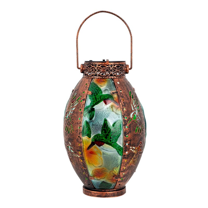 - Exquisite Art: The colored glass of this outdoor solar lanterns features vibrant hummingbird and flower patterns, alternating with intricately carved hollow metal frames, adding an elegant decorative touch to your outdoor space