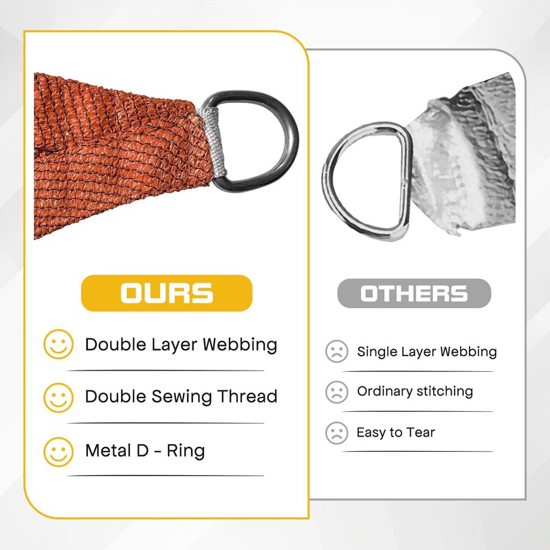 - 【Measurement】: Measure from D-ring to D-ring, allowing 1.5 to 2 feet of space between the D-ring and the mounting point for hardware sets. Allow some shade sail around the edges for tension stretching.