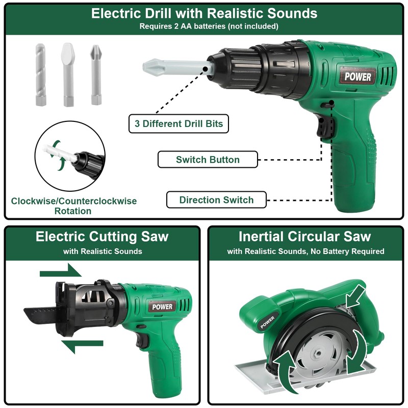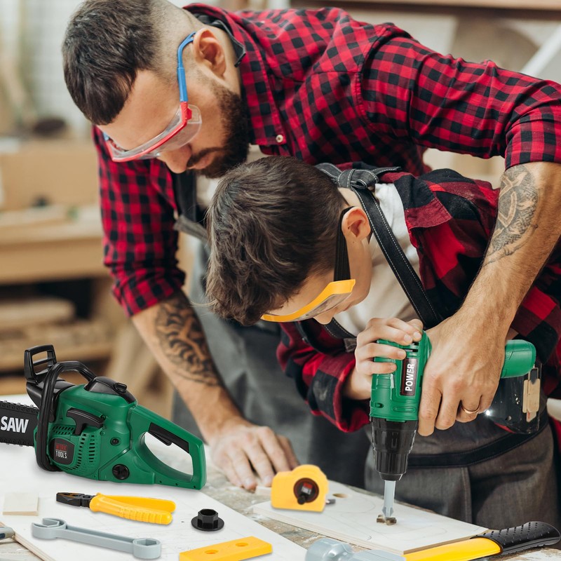 Vextronic Kids Tool Set 36 PCS with Electric Toy Chainsaw Drill Circular Saw with Realistic Sounds, Toy Tool Set for Toddlers 3 4 5 6 7 8, Pretend Play Kids Power Tools Kit Gift for Boys Girls