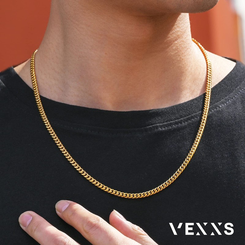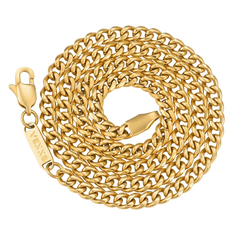 VEXXS 3/4/5/6 mm Men's Curb Chain, 18 K Gold Plated Cuban Necklace, Miami Cuban Link Chain, Men's Chain, Hip Hop, Nickel-Free for Men and Women, Stainless Steel
