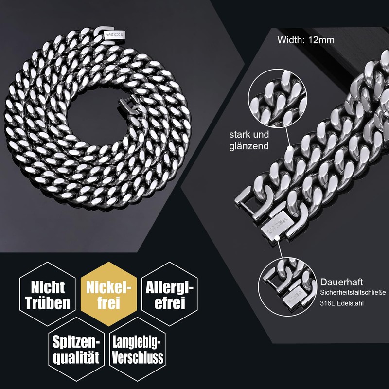 - No fading - VEXXS necklace is equipped with a double electronic PVD coating and highly polished for an eternal shine. High-quality necklace for men and women.
