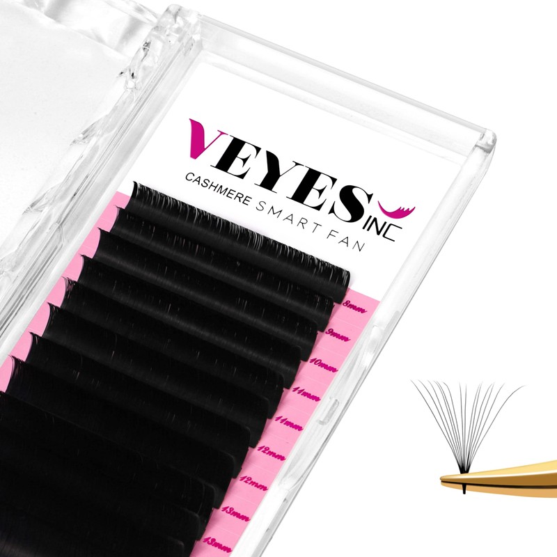VEYES INC Cashmere Smart Fan Lash Extensions 0.03 0.05 0.07 C/CC/D Curl 8-20mm Mixed & Single Length, Super Matte Black Volume Lashes, Professional Supplies for Lash Techs (0.05 D 9mm)