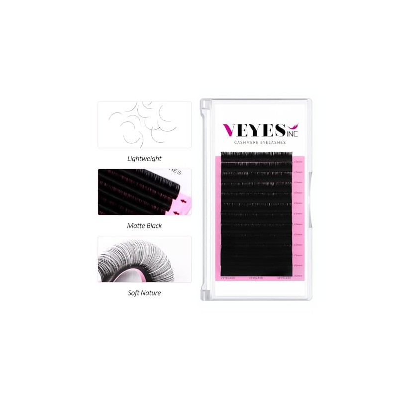 VEYES INC VEYES INC Cashmere Volume Lash Extensions C CC D DD LD L B J M Curl 0.03-0.20 thickness 5-25mm, Super Matte Black Individual Eyelashes Tray, Professional Supplies for Lash Techs (0.07 CC 11-16mm)