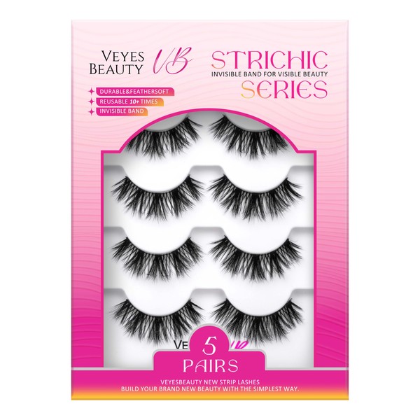 VEYESBEAUTY False Eyelashes Wispy Lashes Lightweight Natural Look Fluffy 3D Layered Volume Faux Mink Thin & Invisible Band BoldBloom Lashes, Comfortable and Reusable, 5 Pairs