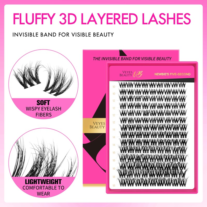 - 3D Layered Wispy Lash Clusters: The lash clusters are made with a new version of technology that gives them a 3D layered, fluffy, wispy look. High-quality PBT fiber ensures that the lashes are soft, lightweight and comfortable to wear. Lash cluster bands are made with new materials and technology so that the bands are thinner, softer, and harder to fall apart.