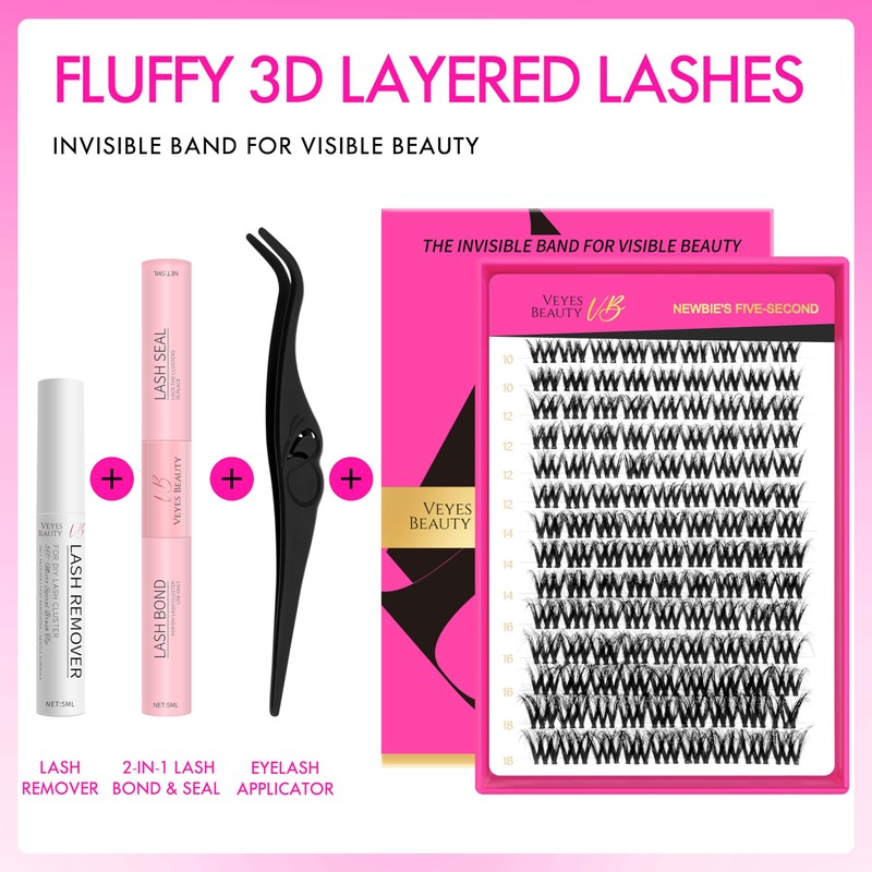 VEYESBEAUTY lash clusters kit is very simple to use and can create any eyelash effect you want. You can change your eyelash look anytime, anywhere. One lash tray is enough for you to use many times.
