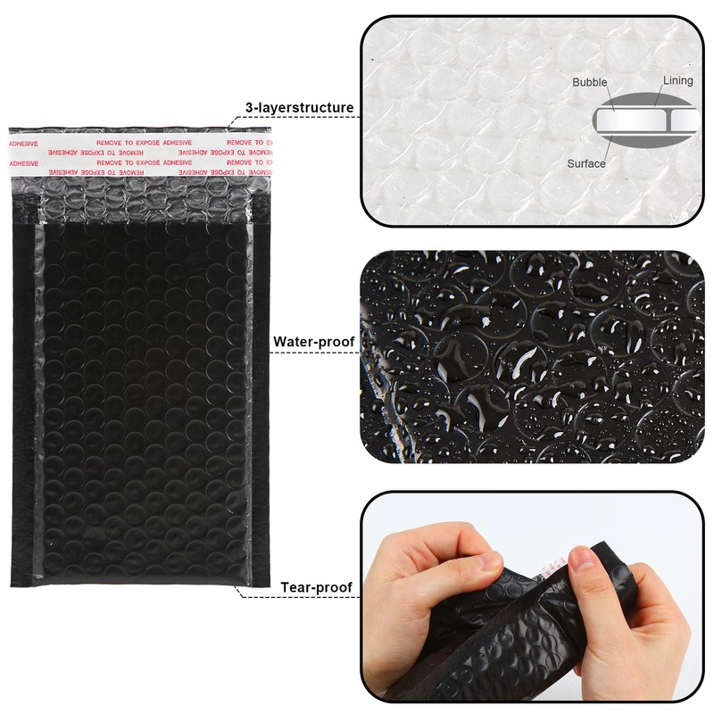 VEYLIN 12Pcs Poly Bubble Mailers, 11x19cm Padded Envelopes, Bubble Lined Wrap Polymailer Bags for Shipping(Black)