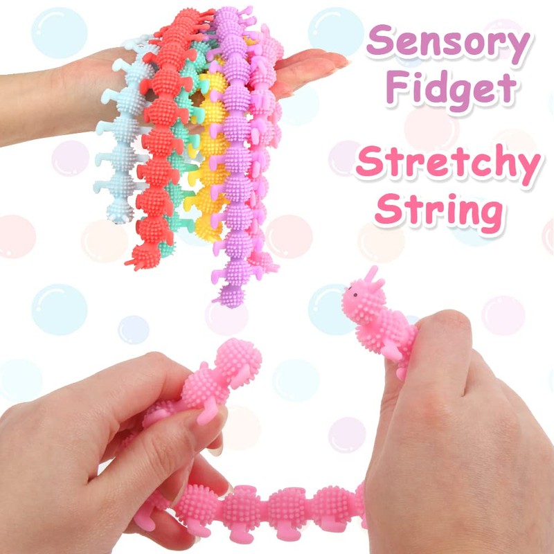 - Size and Design: Each Sensory Fidget Stretchy String is 23 cm long /7.48 inch long. These toys are designed in the shape of caterpillars and are very cute.