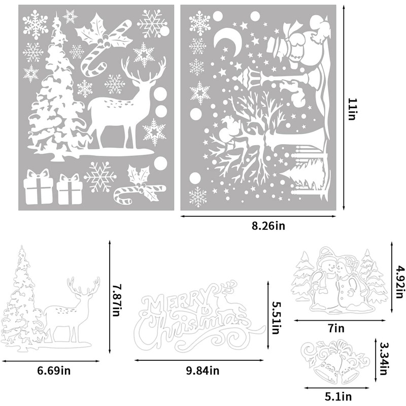 - Package: You will get 8 sheets snowflakes window clings (totally 141 pieces), each sheet approx 7.9 x 11inches, it features various of snowflakes, Santa Claus, Merry Christmas letter, snowman, present boxes etc, they can form a beautiful Xmas scene.