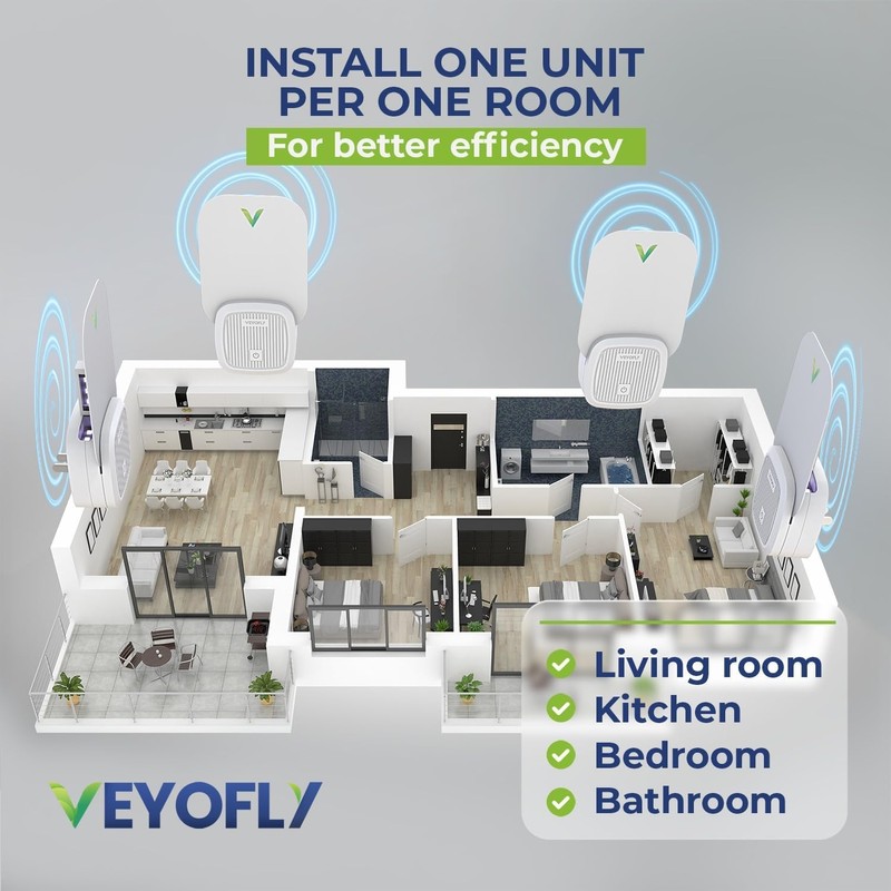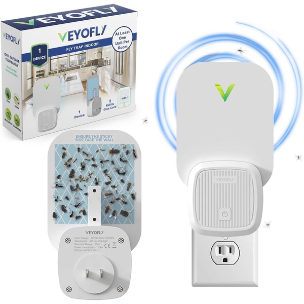 VEYOFLY Fly Trap Indoor, Fruit Fly Traps for Indoors, (1 Device + 3 Refills) Gnat Traps for House Indoor, Fly Catcher Indoor, Safer Plug in Light Flying Insect Trap, Bug Light Killer, Fly Trap