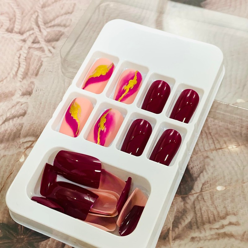 3. Press the fake nails on your nails and hold for 30 seconds.