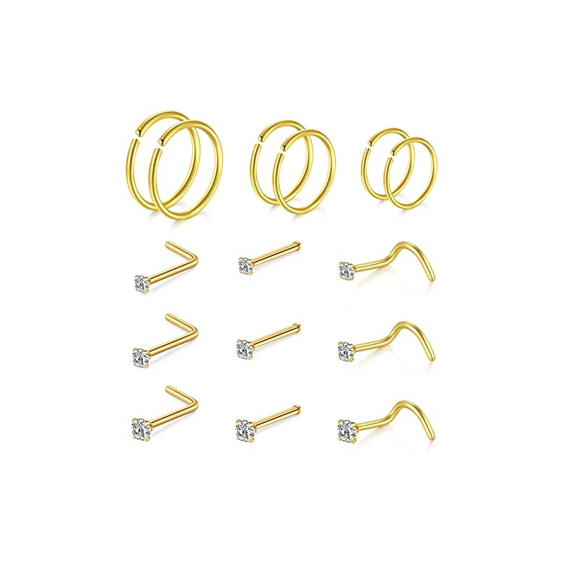 - Value Pack-- 6Pcs Nose Ring 9pcs Nose Stud Pack, Comes With A Velvet Gift Bag.