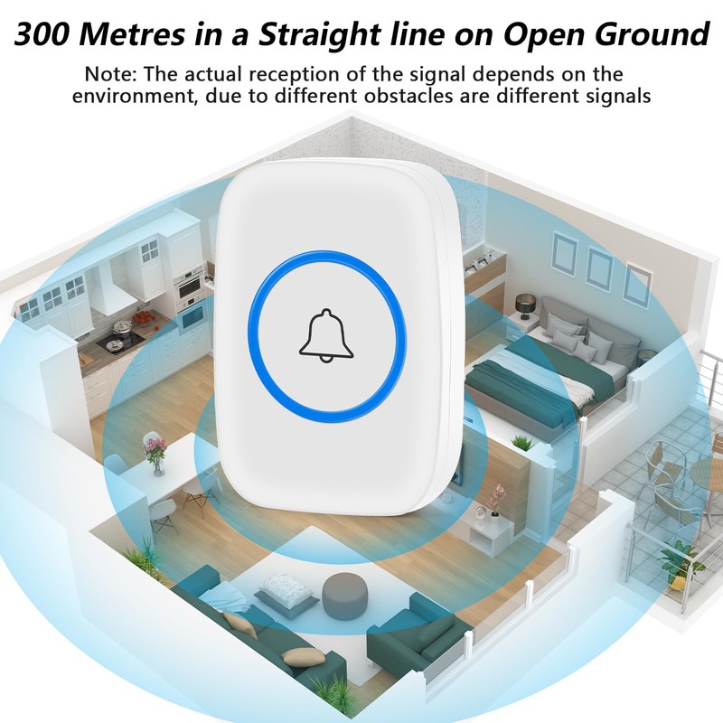 - 300 meters range: the wireless signal can be transmitted within a very long range of 300 meters, and at the same time the signal ability to penetrate the wall is good, the signal can completely cover your home without interference from other devices. Never miss a visitor, even if you are just a few rooms away from the doorbell or on another floor.