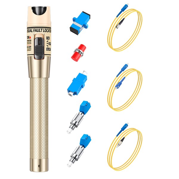 vfl Visual Fault Locator Kit 50mw,Fiber Optic Cable Tester Tool Kit,Fiber Red Light Pen Tester with 2.5mm Universal Connector 2pcs FC-LC Adapter & 1pc LC, SC, FC Coupler & 3 1.5m Patch Cords Fiber