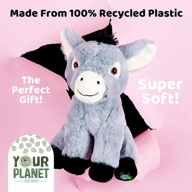 - CUDDLY DONKEY SOFT TOY: One for every animal-lover. This cute donkey teddy from the Eco Plush collection brightens any room. Or use it as part of an entire farmyard collection in a nursery or child’s room.