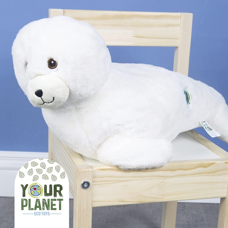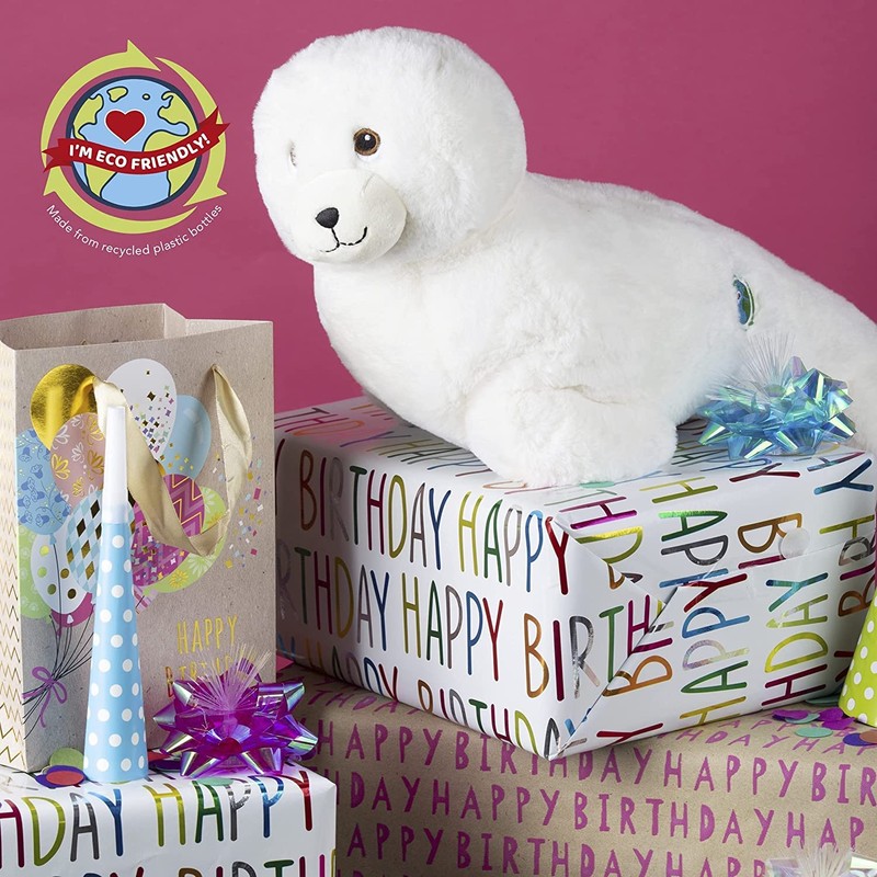 VFM - Seal Soft Toy White 28cm Eco Friendly Toy - Super Soft Cuddly Ocean Animal Fluffy Plush With Embroidered Details Made From 100% Recycled Material - Your Planet