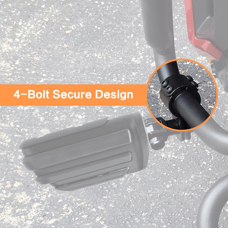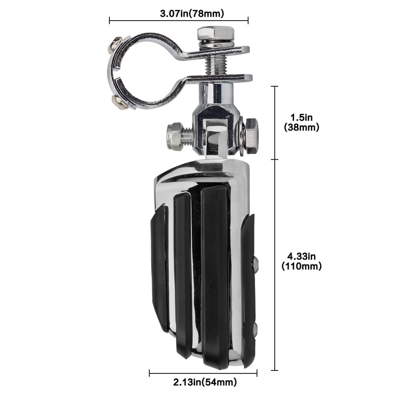 • 【Adjustable Angles】Highway footpegs with mounting clamp is 270 degree adjustable, firmly grips the engine guard, and the locking design secures the peg 360 degrees at the desired angle. Skid proof engraved durable rubber surface.