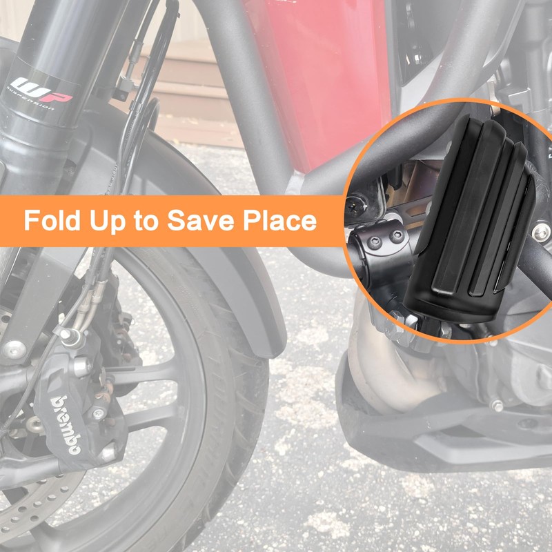 • 【Excellent Design】With stylish streamlined designs and decorative contours, our highway pegs for crash bars give your motorcycle a customized look that becomes even more attractive! And add a place to tilt your foot outward, makes your feet more comfortable during long rides.
