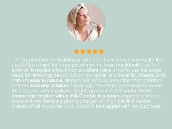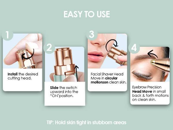 - GENTLE & PAINLESS: The 2-1 women's hair remover is suitable for daily use to keep up with hair regrowth and leave it smooth, specially designed for use on eyebrows, upper and lower lip, cheeks, chin, and neck. Works on peach fuzz or fine hair. Go slow with circular movements and it will do the job.