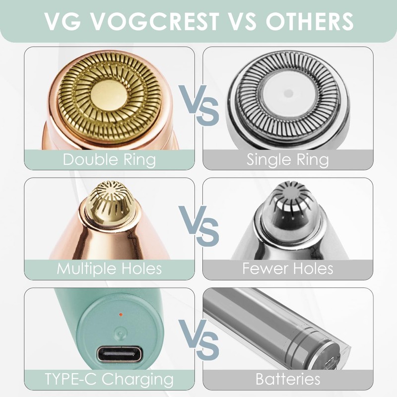 VG VOGCREST Eyebrow Facial Trimmer: 2 in1 Rechargeable Facial Hair Removal and Eyebrow Shaver - Face Lips Body Painless Facial Razor with Built-in LED Light (Pastel Green)