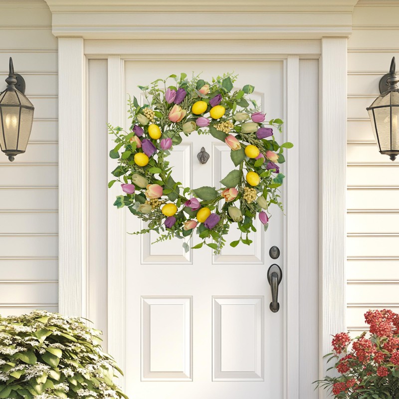 - Gorgeous Design --This wreath features a sturdy base adorned with tulips, soft-touching lemons and thick artificial greenery, adding a natural flavor to your family.