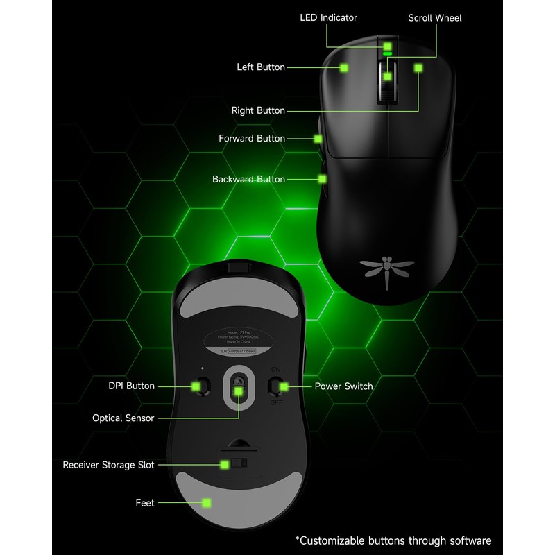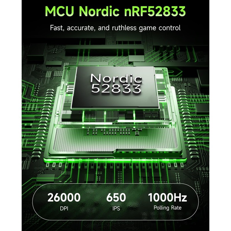 - PRO-GRADE PAW 3395 SENSOR + NORDIC NRF52833 CHIP – Delivers up to 26,000 DPI, 650 IPS tracking, and 1000Hz polling rate with ultra-low latency. Built for precision aiming and fast response in high-stakes matches.