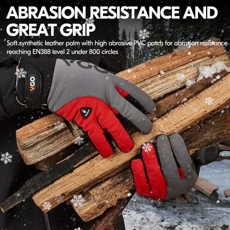 Vgo... 1-Pair -4℉ or above Women's Lined High Dexterity Touchscreen Synthetic Leather Winter Warm Work Gloves, Waterproof Insert (Size L, Red, SL8777FLWP)