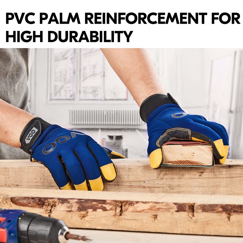 Vgo... 1 Pair Safety Leather Work Gloves, Mechanic Gloves, Anti Vibration Gloves, Rigger Gloves, Abrasion Resistant, Palm Padded (PA7726)