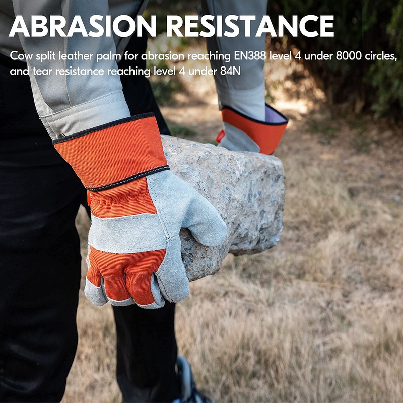 - PALM - Carefully selected high-quality split cowhide is exceptionally durable and puncture-resistant, protecting hands from the hard environment in a wide variety of tasks
