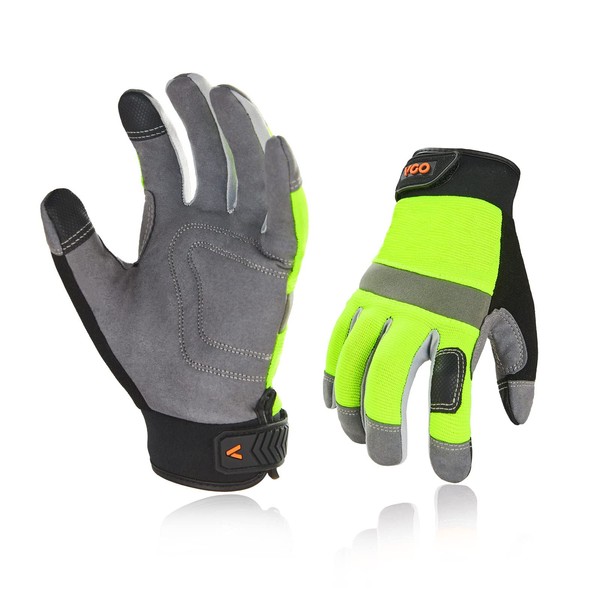 Vgo... 2 Pairs Men's Safety Gloves Touch Screen Practical Work Gloves for Gardening, Warehouse and Light Mechanic Work (2 Pairs, Size L, Green, SL7584)
