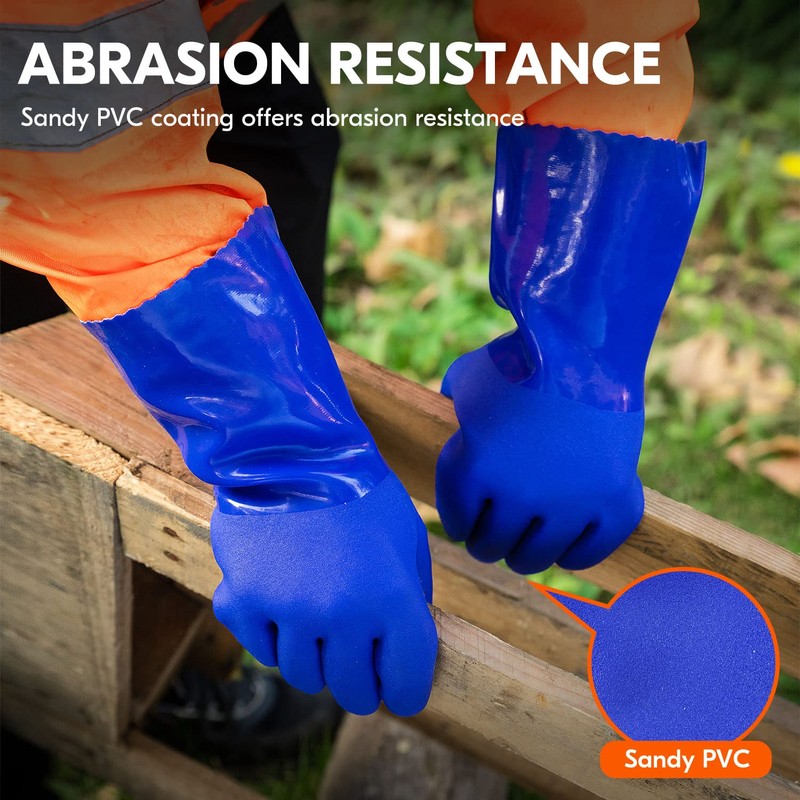- 12 inch PVC coated with textured handle to protect against aggressive liquids and chemicals