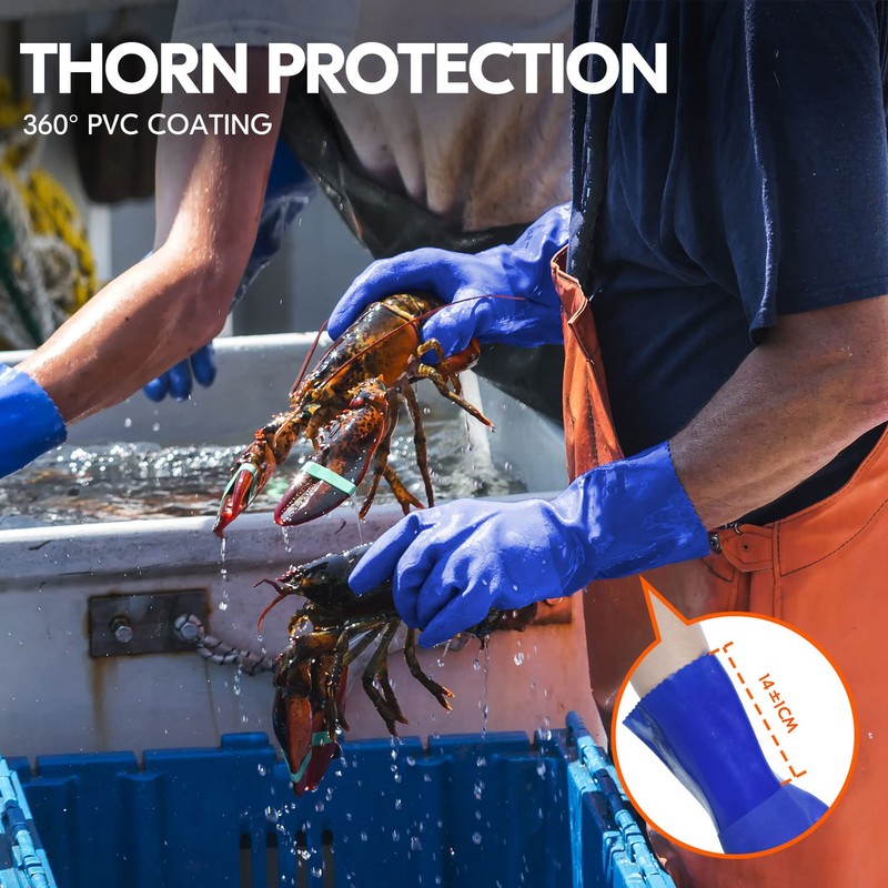 Vgo... 2pairs Household GLOVES PVC with Lining, Cleaning Gloves Multifunction Antiolio Waterproof with Long Sleeves