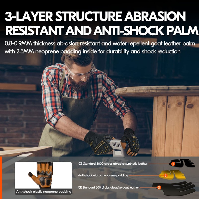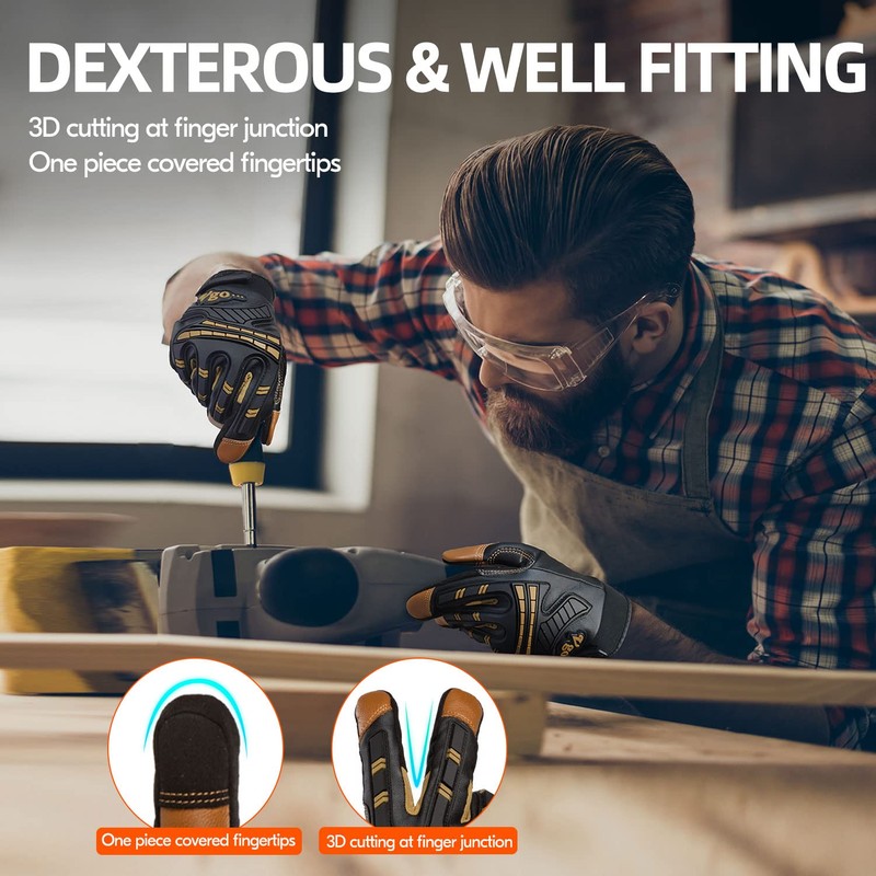 Vgo... GA8954 Mechanics Gloves, Work Gloves, Rigger Gloves, Heavy Duty, Anti-Vibration, Anti-Abrasion, Goatskin, Touchscreen