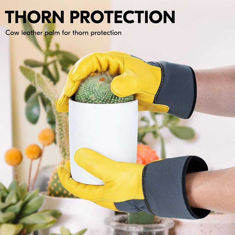- THORN PROTECTION & ABRASION RESISTANCE - Cow leather palm for thorn protection and wear resistance as well as extra abrasion resistance