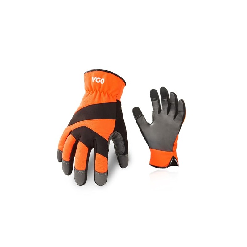 [Vgo...] Men's Waterproof Thermal Gloves for Winter (0°C), Mechanic Gloves, PU Work Gloves, Synthetic Leather, Work Gloves, Maintenance Gloves, PU7741-ML (Orange, M)