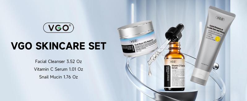 VGO Skincare Kit - Vitamin C Serum, 92% Snail Mucin Moisturizer, Double-Tube Deep Cleansing Foam, and Hydrating Repair Set - Specification: VC Facial Serum 30ml*2+Snail Mucin+Facial Cleanser